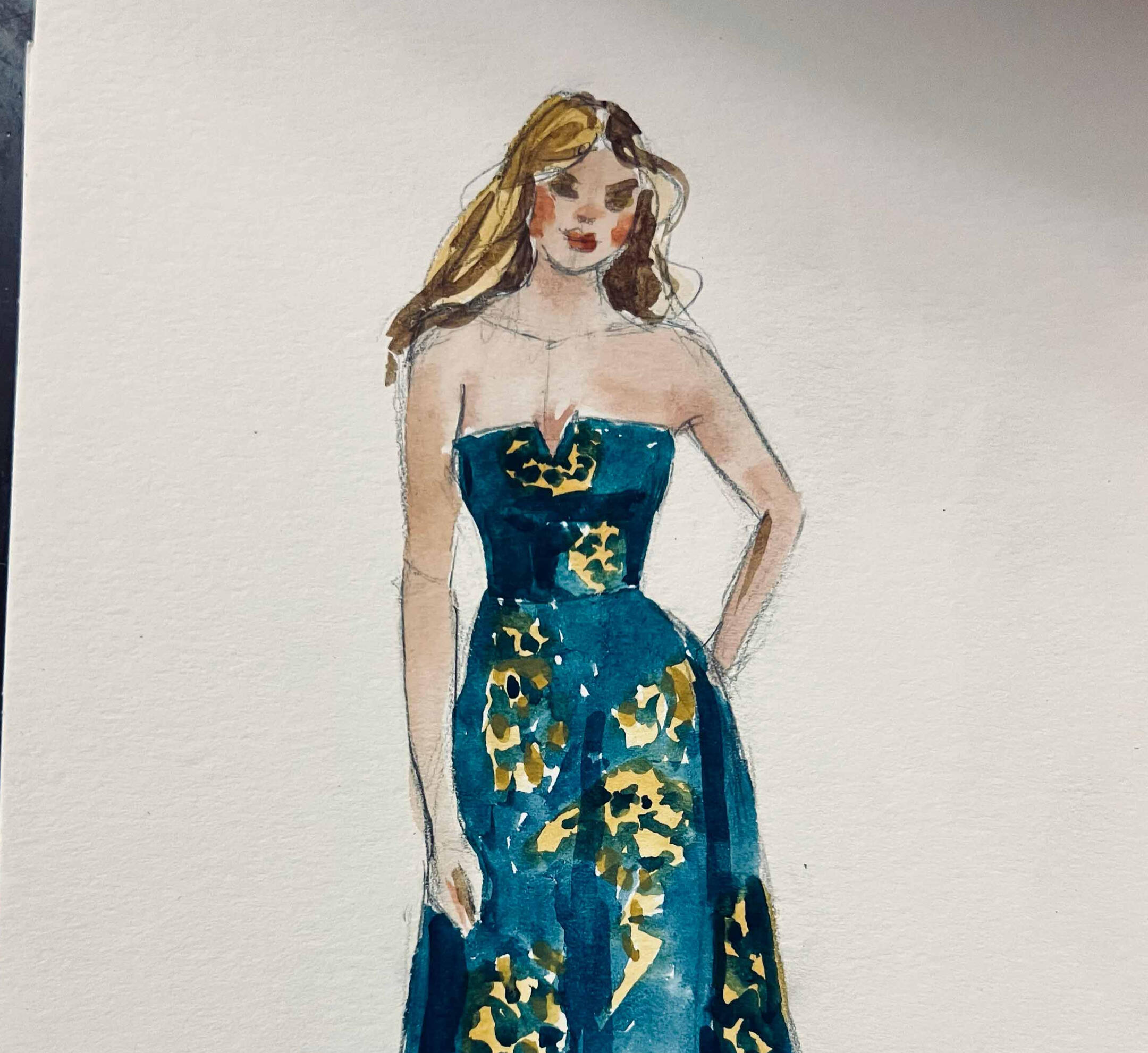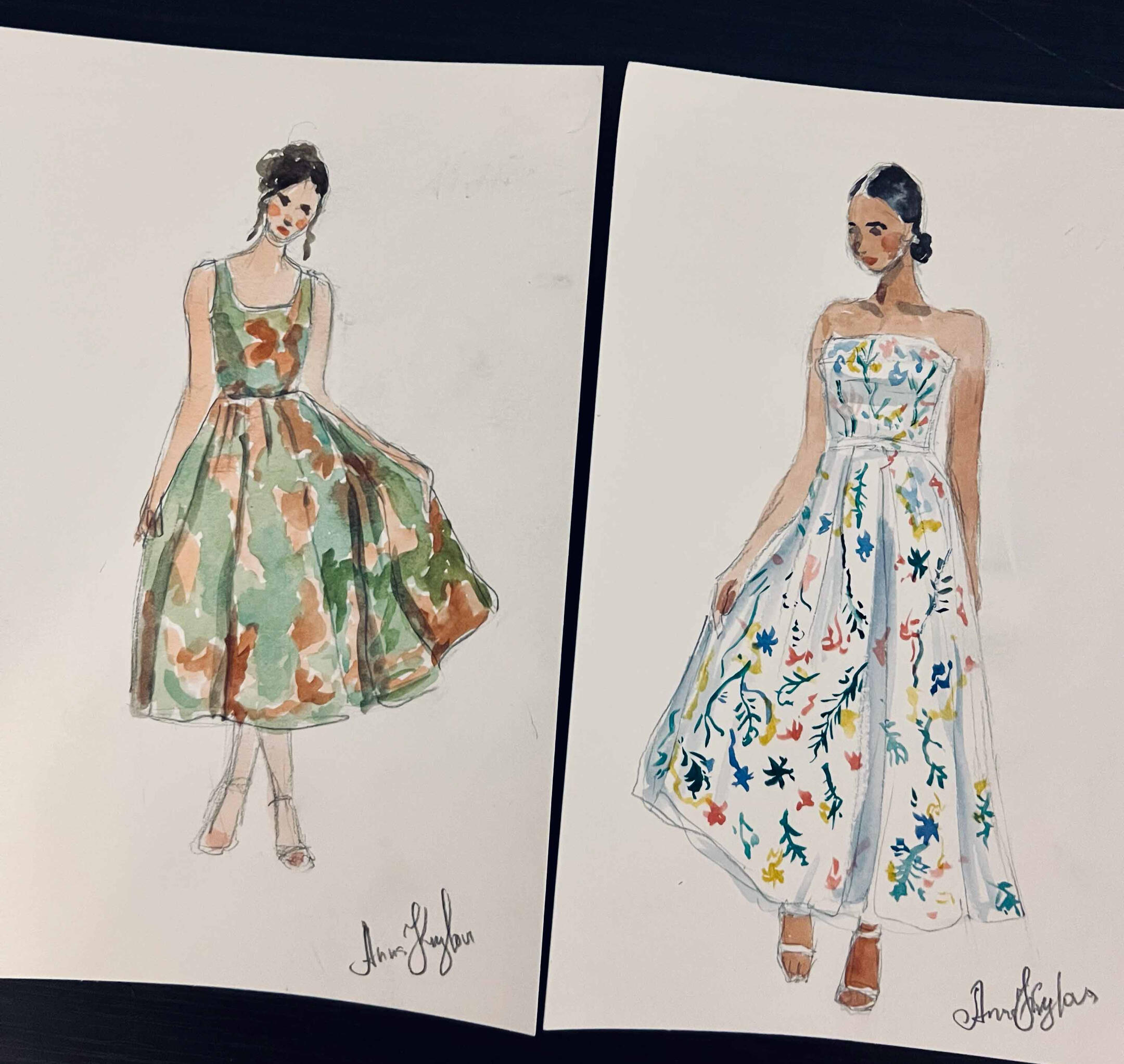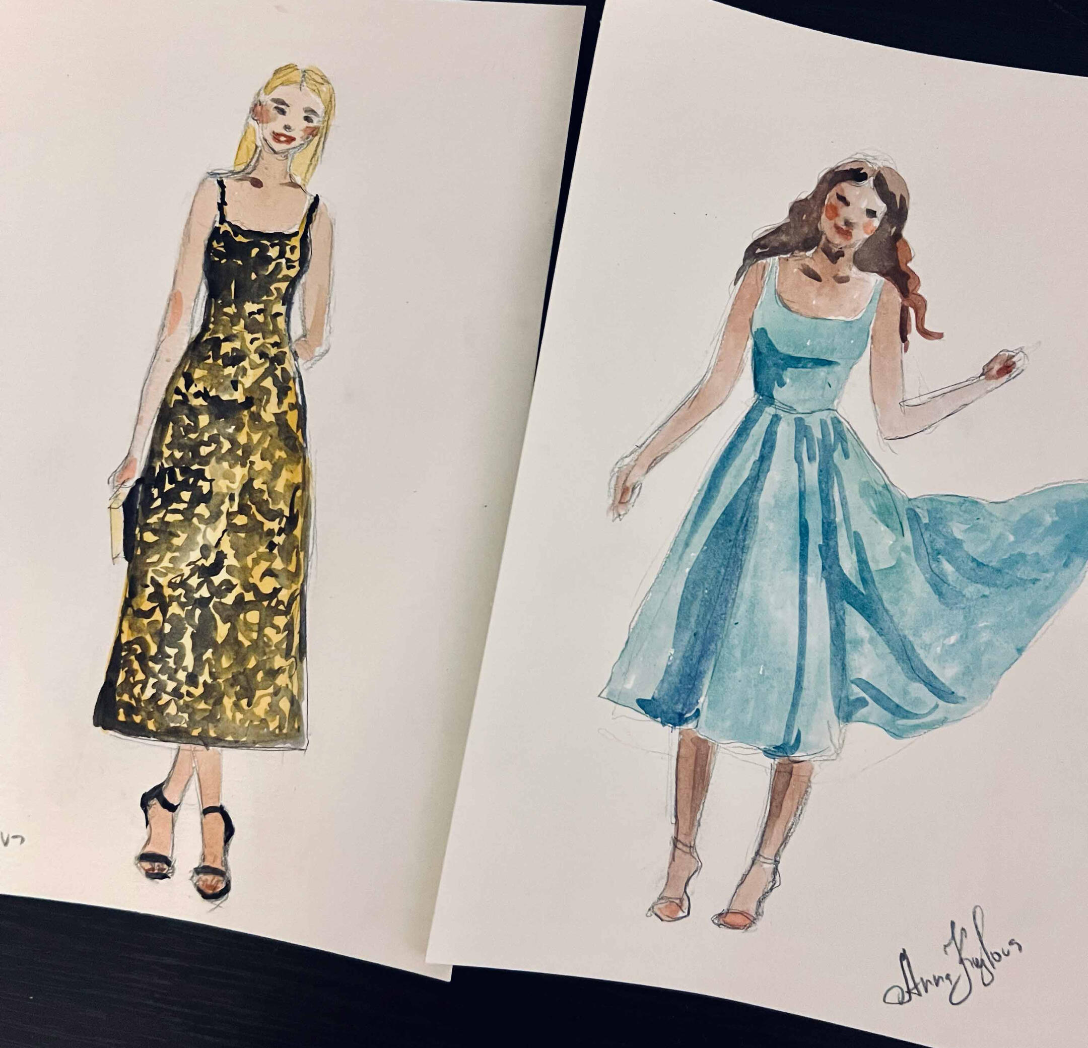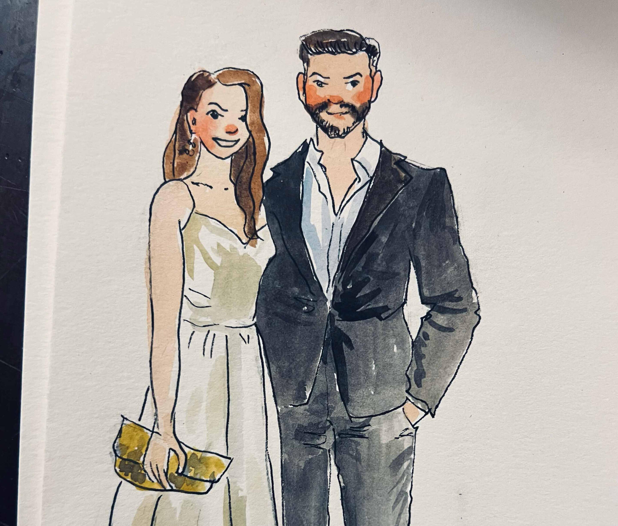 I arrive 15–30 minutes before guests to set up and get ready. As guests arrive, I’ll take a quick photo and note their name—then they’re free to enjoy the celebration. Guests are welcome to stop by anytime to watch the artwork come to life, but no one needs to wait or stand in line.Once photos are taken, I begin painting right away. Portraits are created in a quick, expressive watercolor sketch style on 5×7 paper. Each finished piece is placed in a protective sleeve so guests can take it home safely.During live painting, I typically complete 6–10 portraits per hour, depending on event flow. For packages that include post-event completion, any portraits not finished on-site are completed in-studio from photo reference and delivered within 2 weeks.